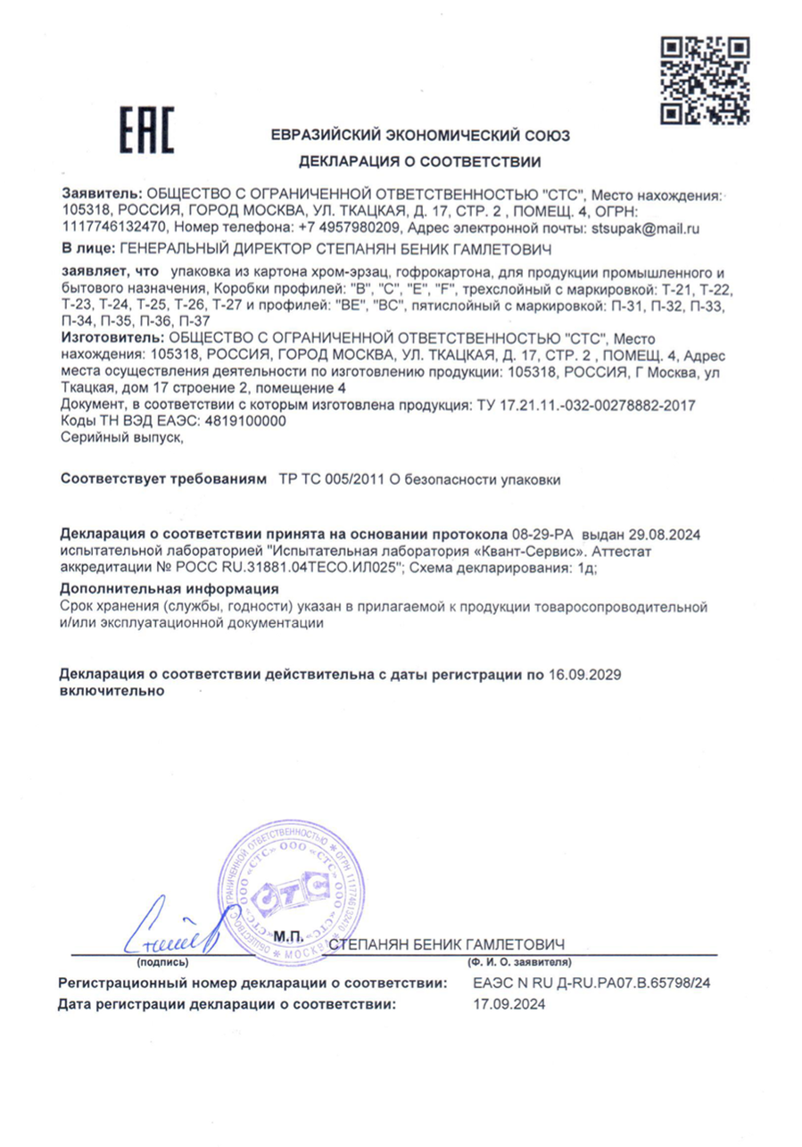 Типы картона — трехслойный и пятислойный, марки Т21-Т27, профили «В», «С», «Е» (бурый и белый)